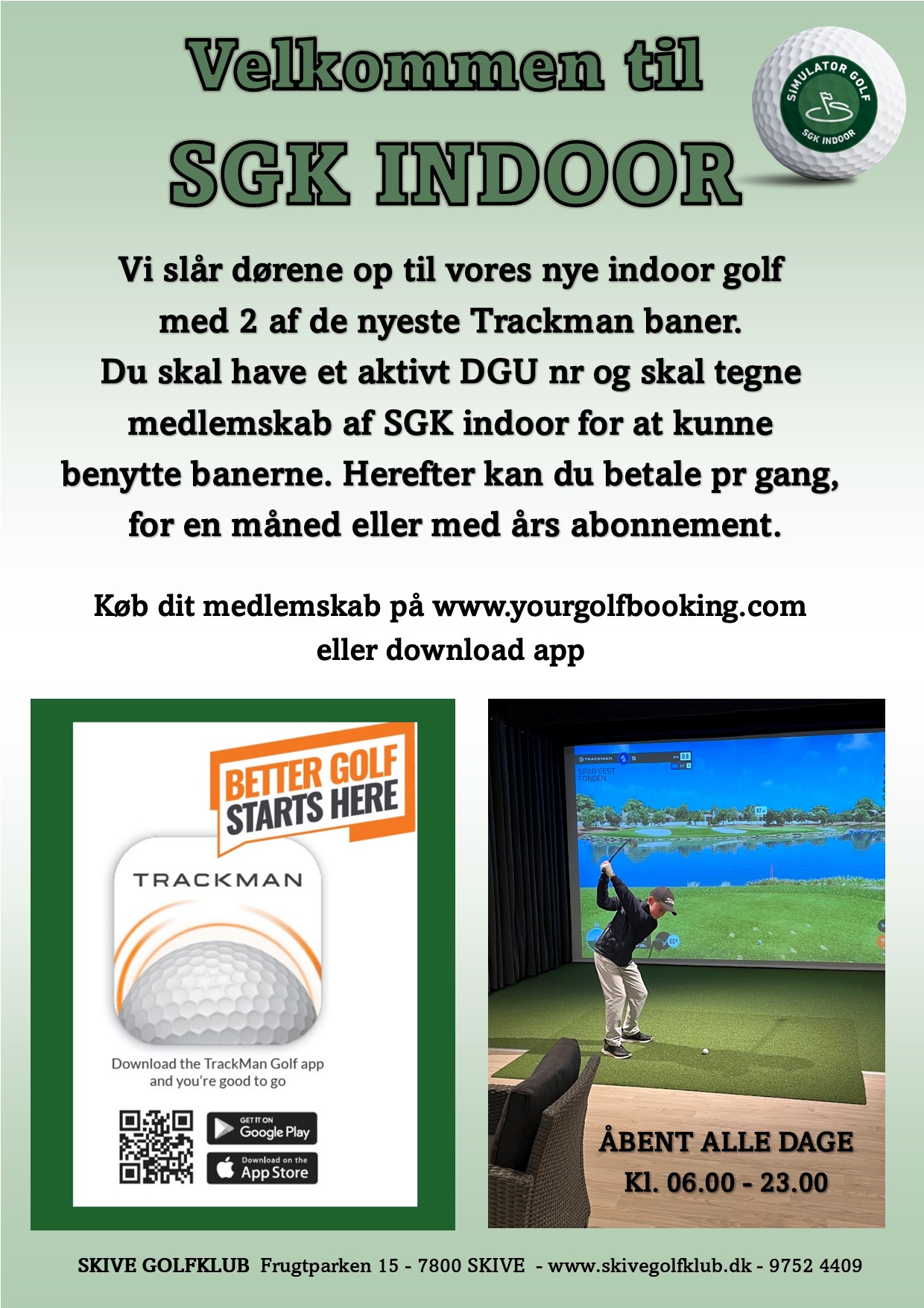 - Hold øje med tidsbestilling i Golfbox for aktuel banestatus.