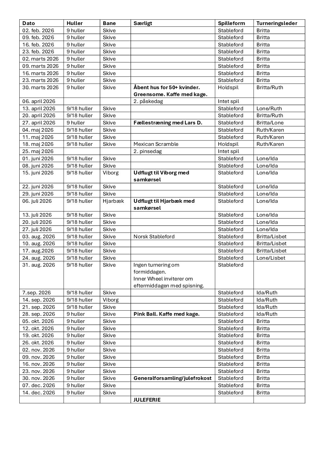 Turneringskalender 2026
